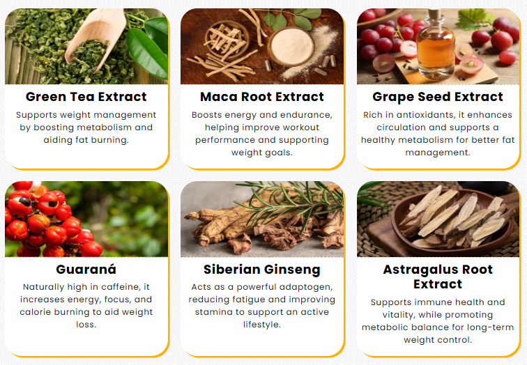 VittaBurn emphasizes clean, natural formulation. It contains no GMOs or synthetic additives and is produced in the USA in an FDA-registered, GMP-certified facility. The blend includes well-known botanical ingredients such as Green Tea, Grape Seed Extract, Guarana, and African Mango, which are associated with energy support, fat metabolism, appetite balance, and antioxidant protection. Together, these elements aim to promote healthy, sustainable weight loss without harsh stimulants.